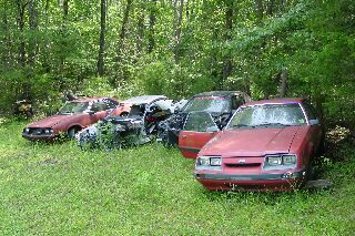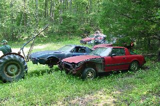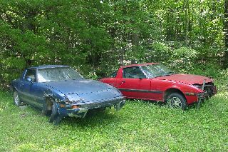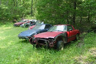 Here are pics from my junkyard. There are also some parts available for sale from both the RX-7s and the Mustangs. Email for more information on these.